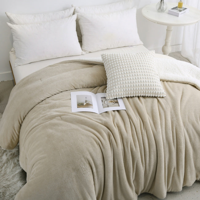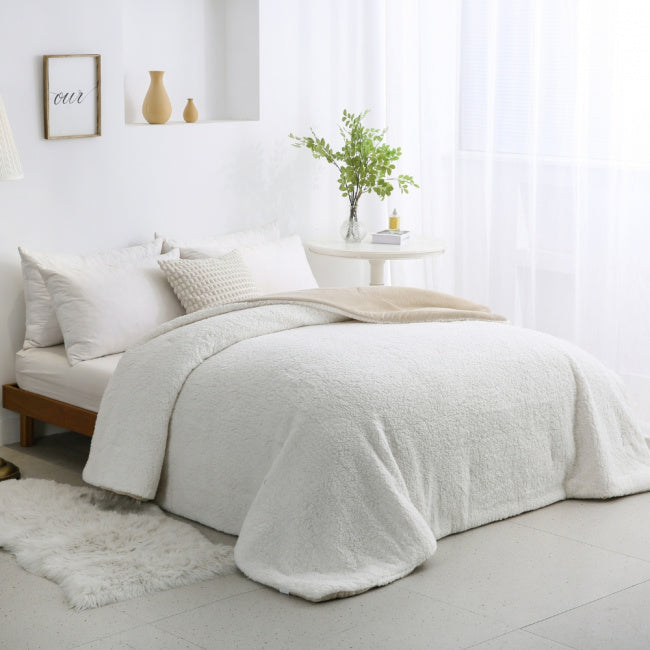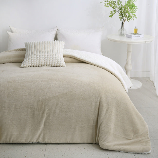 Dupla Face: Um lado com tecido Sherpa, conhecido por sua textura similar à lã de carneiro, e o outro lado com uma manta de tecido soft, proporcionando versatilidade e conforto.