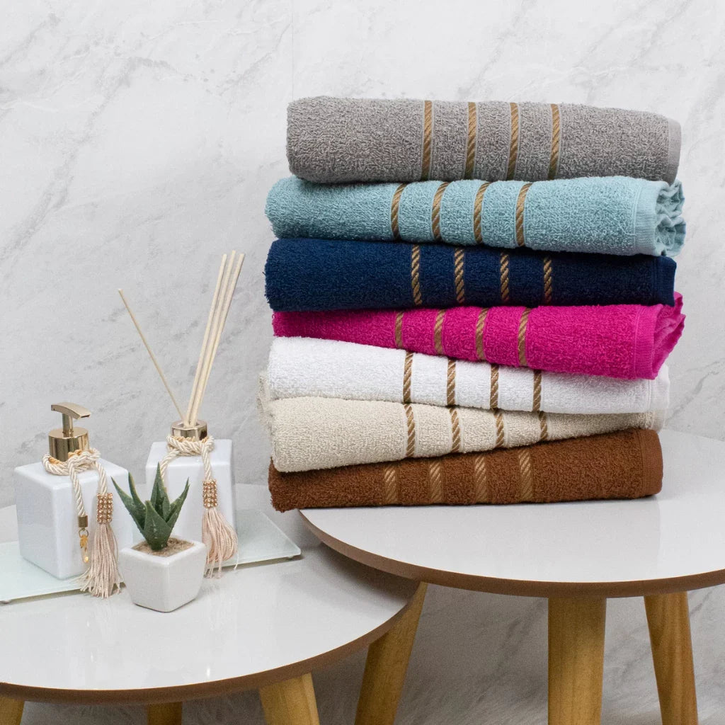 Absorção Eficiente: Com uma gramatura de 450g/m², estas toalhas oferecem alta capacidade de absorção, mantendo você seco e confortável após o banho.