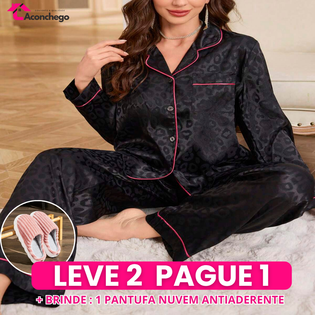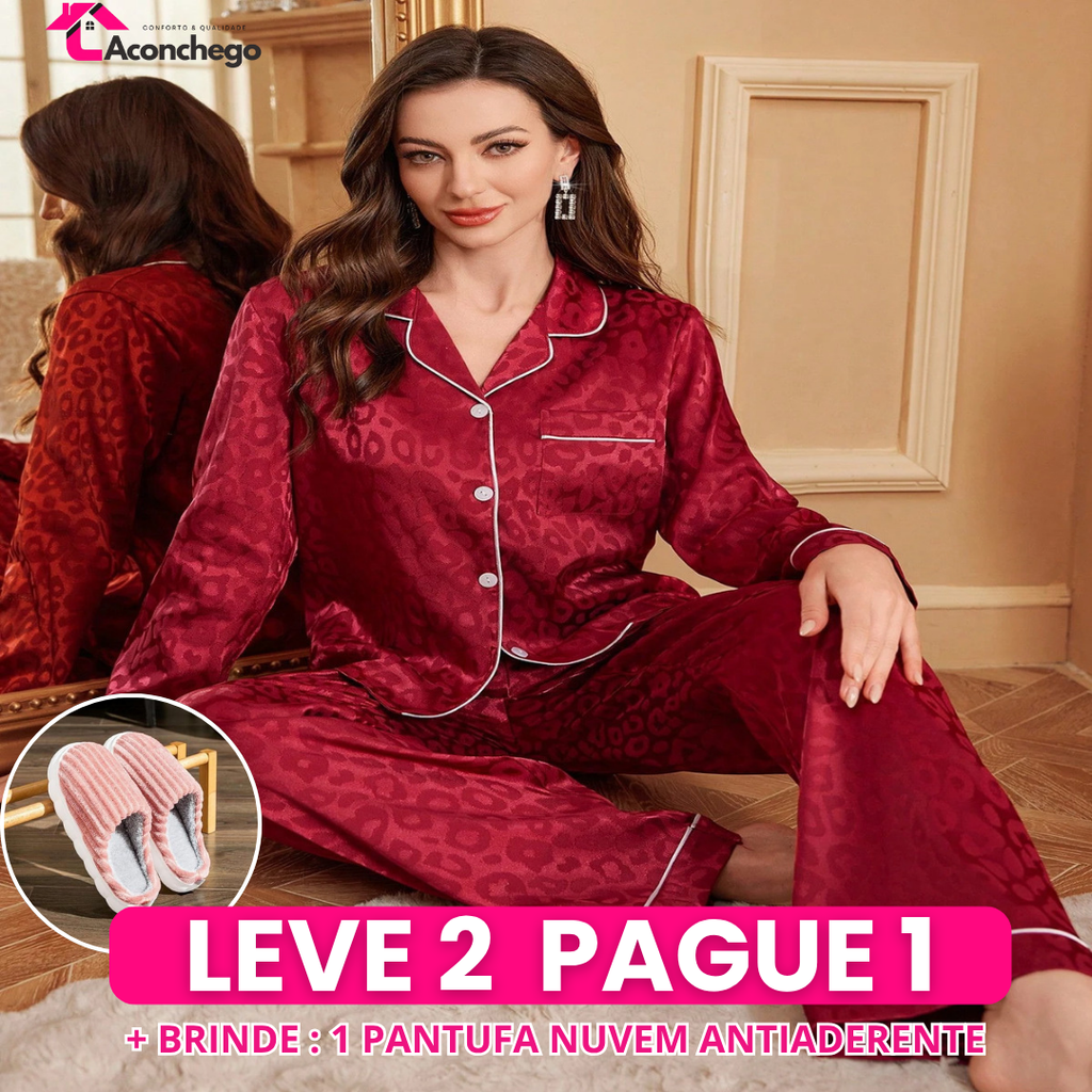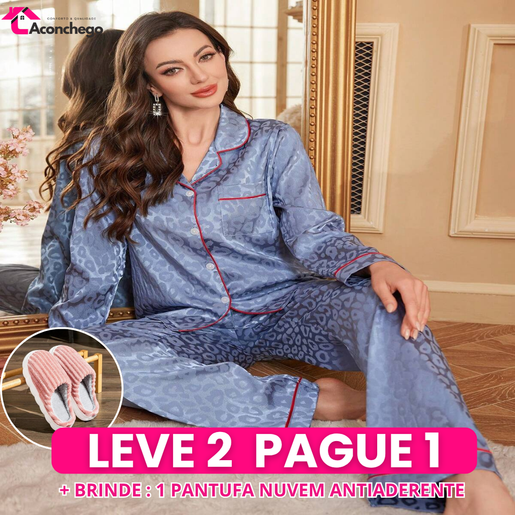 [Leve 2 Pague 1] Pijama Feminino Jacquard (Maciez que aquece) + BRINDE: 1 Pantufa Nuvem Antiaderente