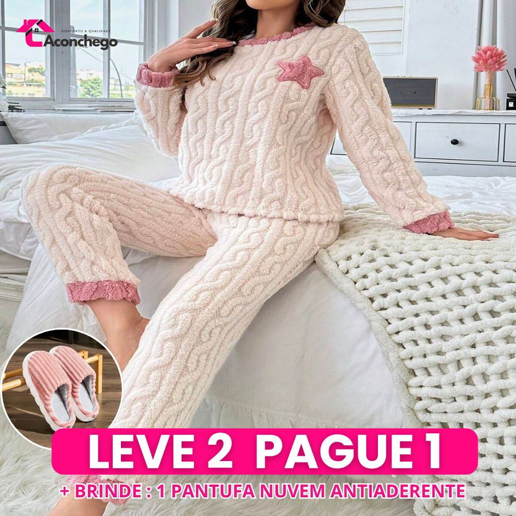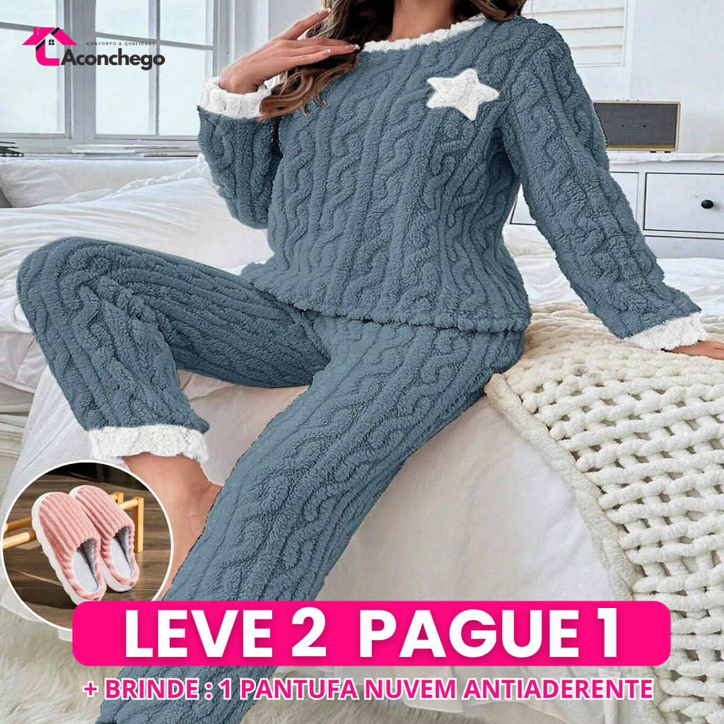 Feito com tecido macio e de alta resistência térmica, o pijama protege do frio sem pesar, permitindo liberdade de movimento e mantendo a temperatura ideal do corpo — perfeito para quem valoriza conforto sem abrir mão de elegância até na hora de dormir.