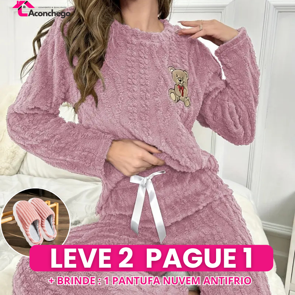 Nosso Pijama Feminino de Inverno URSINHO LUMA foi pensado nos mínimos detalhes para oferecer o equilíbrio perfeito entre aquecimento, leveza e estilo. Ele vem em um conjunto com 2 unidades, para você ter sempre uma opção extra com o mesmo toque aconchegante — e ainda acompanha um brinde exclusivo: 1 pantufa antifrío, ideal para completar a experiência dentro de casa.